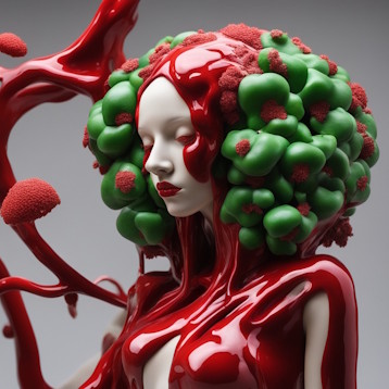 October 12. I've made another AI video. I don't think any good can come from arguing that something is "art" or "not art", but I want to talk about the process of creativity. The myth of creativity is that the Creative person, through Talent, is able to tune into the magical land Where Ideas Come From, and it arrives fully formed on the page or canvas or whatever, the Art. And sometimes that's exactly what happens. But usually there are at least two more elements. One is that whatever you channel still needs a lot of work -- filtering, arranging, modifying -- before it's good enough. Another is that creatives get a ton of ideas from stuff that other creatives have already done.